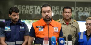 O governador do Rio de Janeiro, Cláudio Castro, informou neste sábado (23) que as chuvas em Petrópolis, na região serrana, passaram de 304 milímetros (mm)