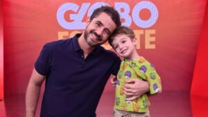 O apresentador Felipe Andreoli adora levar o filho, Rocco, para o trabalho, mas já sofreu algumas consequências com essa decisão. No passado, o menino acabou